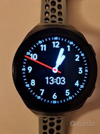 orologio temuto moto bene con doppio cinturino ,base di ricarica ,proteggi schermo e scatola originale . la batteria dura molto . orologio usato poco, come da foto , solo due mesi in estate .