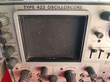 oscilloscopio Tektronix Type 422, un dispositivo vintage utilizzato per visualizzare e analizzare segnali elettrici nel tempo. Display: Tubo a raggi catodici per la visualizzazione delle forme d'onda. Funzionalità: Misura tensione (asse verticale) e tempo (asse orizzontale). Comandi: Include regolazioni per intensità, messa a fuoco, sensibilità verticale (Volts/Div) e base dei tempi (Time/Div). Utilizzo: Strumento fondamentale in laboratori di elettronica per diagnosticare e testare circuiti. tor vergata o piramide