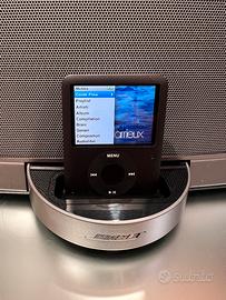 • Dotato di dock a 30 pin integrato per la ricarica e la riproduzione immediata dell'iPod.