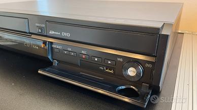 Vendo per inutilizzo. Ha un problema sulla lettura delle VHS. La meccanica funziona ma durante il play, l'output si spegne e non si vede nulla, mentre la cassetta prosegue correttamente. Se si prosegue con l'avanzamento rapido, sulla TV si possono vedere le immagini della cassetta riprodotta velocemente. Il resto funziona correttamente. Riporto acuni dati tecnici. Registratore DVD con DVB-T+VHS, overplay da (S) VHS a DVD e viceversa (rispetto alla protezione dalla copia), uscita HDMI (1080p), ingresso USB (MP3, HD-JPEG, DivX), registrazione multiformato: DVD-RAM/-RW/-RW/-R/+RW/+R e VHS (6 teste HiFi), modalità LP con risoluzione di 500 linee (4 ore. In qualità DVD), rivista elettronica di programmazione; numero di testine video: 6; Longplay: sì; numero di porte SCART: 2; lettore DVD integrato: sì; larghezza: 430 mm; altezza: 84 mm; profondità: 346 mm