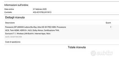 Acquistato a febbraio 2025, solo dopo 1 anno mi sono deciso a fare le foto: non avendo nessuna intenzione di acquistare film blu ray in UHD nativo e possedendo già un lettore blu ray 4K upscaling, che è più che sufficiente, lo vendo per inutilizzo.