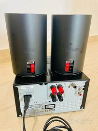 PROPONGO AMPLIFICATORE PANASONIC MODELLO SA-Pmx7 PIÙ COPPIA DI DIFFUSORI ACUSTICI JAMO KLIPSCH MODELLO A-310 TUTTO IN BUONE CONDIZIONI, L AMPLIFICATORE EROGA 60watt , HA UNA SEZIONE TUNER INTEGRATA E UnA PORTA-USB-IPAD- USCITA SUL RETRO AUX HO PROVATO UN LETTORE CD E FUNZIONA (il lettore interno dell amplificatore fa fatica a leggere) HA ANCHE UN-BLUETOOTH-INCORPORATO (non l ho testato). SENZA TELECOMANDO.