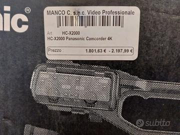 Vendo, anche separatamente, due videocamere professionali Panasonic HC-X2000 identiche. Le macchine sono state utilizzate esclusivamente per la ripresa di tre cicli di conferenze e sono state tenute in condizioni maniacali. Caratteristiche principali: Qualità Video Top: Registrazione in 4K a 60p con campionamento 4:2:2 a 10-bit (ideale per color correction professionale). Zoom Potente: Zoom ottico 24x che arriva a 32x (i.Zoom), equivalente a un 25-800mm. Perfetto per riprendere dettagli da fondo sala in conferenze, spettacoli teatrali, eventi sportivi o natura. Audio Professionale: Maniglia inclusa con doppio ingresso XLR bilanciato. Permette di collegare microfoni professionali o ricevere il segnale direttamente dal mixer di sala senza disturbi. Controllo Totale: Modalità full-auto eccellente per chi inizia, ma con tutte le funzioni manuali (ghiere, ND filter fisici, zebra, focus assist) per i professionisti. Streaming integrato: Supporta il protocollo RTMP per dirette Facebook/YouTube direttamente dalla camera tramite Wi-Fi. Condizioni e Prezzo: Le camere sono perfette, senza graffi o segni di usura, usate sempre su cavalletto in ambienti chiusi e puliti. Prezzo d’acquisto (2 anni fa): oltre 2.000€ l'una. Prezzo di vendita: 900€ cadauna + spedizione Disponibile per prova e visione di persona. Possibilità di spedizione assicurata.