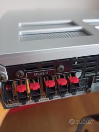 Vendo come da titolo sistema Home Cinema Panasonic 310 comprensivo di casse 5 + 1, amplificatore e lettore DVD/MP3 tutto marca Panasonic. Condizioni perfette. Unico neo, si è staccata una levetta di collegamento del filo di una cassa (vedere foto allegata) nell' amplificatore ma è un problema facilmente risolvibile. Solo consegna a mano. Se interessati regalo lettore VHS sempre marca Panasonic.