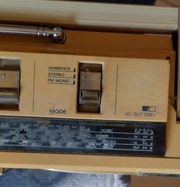 Vendo iconico registratore a cassette e radio Panasonic RX-F2LS. Un pezzo di design ricercato dai collezionisti per il suo stile unico e compatto. ✅ CONDIZIONI POSITIVE: Testato e Funzionante: Sia la radio che la musicassetta riproducono audio. Uscita Cuffie: Funzionante (rara in queste condizioni). Antenna: Originale, integra, dritta e completa di cappuccio. Vano pile: Pulito, senza segni di acido ⚠️ DA NOTARE (Segni del tempo): Piccola crepa sulla plastica vicino all'attacco della maniglia (vedi foto di dettaglio), che non impedisce il trasporto. Selettore "Mode" attualmente bloccato. I tasti della cassetta sono invertiti/da riallineare esteticamente, ma i comandi rispondono. Normali segni di usura sulla griglia delle casse. Perfetto come elemento d'arredo o per appassionati di restauro elettronico.