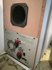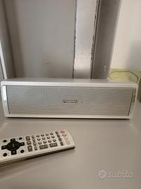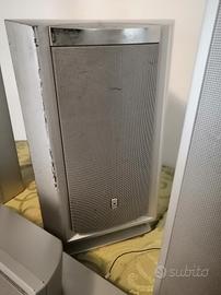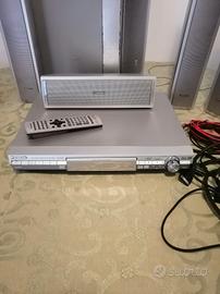 Impianto home theater 5.1 con lettore dvd incorporato, tratto funzionante, con i segni del tempo in buone condizioni, ottima qualità per un sistema audio 5.1 del genere, subwoofer grande, pesante e molto potente!!