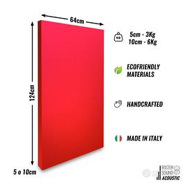 Pannelli Acustici fonoassorbenti Foster Sound Linea 5 (spessore 5cm), 100% realizzati a mano in Italia. Foto di altri progetti su Instagram: @fostersound_acoustic Progettati per migliorare l'acustica di qualsiasi ambiente come home studio, uffici, ristoranti, sale conferenze, alberghi, home theatre, studi di registrazione e sale prova, dove è necessario migliorare la risposta alle basse/medie frequenze e tempi di riverberazione medio-alti. SPECIFICHE TECNICHE – Struttura robusta in legno – Tessuto posteriore in TNT – Tessuto a vista fonotrasparente (3 colorazioni) – Pannello semi-rigido interno in lana minerale bio-solubile Rockwool, atossica, ignifuga | Densità 50Kg/m3 – La Barriera Fonoassorbente ha il certificato A1 – La Barriera Fonoassorbente ha il certificato Indoor Air Comfort Gold DIMENSIONI E PESO Larghezza: 64 cm Altezza: 124 cm Spessore: 5 cm Peso: 3 Kg FACILE INSTALLAZIONE – Avvita i 4 occhielli in acciaio INOX in dotazione alle estremità – Appendili con dei semplici ganci (non inclusi) negli angoli, soffitti o pareti – Niente colla, facilmente riposizionabili Sul Sito si accettano pagamenti PayPal (anche 3 rate), Carta di Credito/Debito, Bonifico Bancario, Contanti. Ritiro a mano a San Vincenzo (LI) o spedizione.