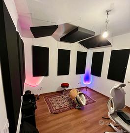 Pannelli Acustici fonoassorbenti Foster Sound Linea 5 (spessore 5cm), 100% realizzati a mano in Italia. Foto di altri progetti su Instagram: @fostersound_acoustic Progettati per migliorare l'acustica di qualsiasi ambiente come home studio, uffici, ristoranti, sale conferenze, alberghi, home theatre, studi di registrazione e sale prova, dove è necessario migliorare la risposta alle basse/medie frequenze e tempi di riverberazione medio-alti. SPECIFICHE TECNICHE – Struttura robusta in legno – Tessuto posteriore in TNT – Tessuto a vista fonotrasparente (3 colorazioni) – Pannello semi-rigido interno in lana minerale bio-solubile Rockwool, atossica, ignifuga | Densità 50Kg/m3 – La Barriera Fonoassorbente ha il certificato A1 – La Barriera Fonoassorbente ha il certificato Indoor Air Comfort Gold DIMENSIONI E PESO Larghezza: 64 cm Altezza: 124 cm Spessore: 5 cm Peso: 3 Kg FACILE INSTALLAZIONE – Avvita i 4 occhielli in acciaio INOX in dotazione alle estremità – Appendili con dei semplici ganci (non inclusi) negli angoli, soffitti o pareti – Niente colla, facilmente riposizionabili Sul Sito si accettano pagamenti PayPal (anche 3 rate), Carta di Credito/Debito, Bonifico Bancario, Contanti. Ritiro a mano a San Vincenzo (LI) o spedizione