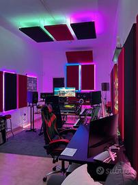 Pannelli Acustici fonoassorbenti Foster Sound Linea 10 (Bass Trap), 100% realizzati a mano in Italia. Foto di altri progetti su Instagram: @fostersound_acoustic Progettati per migliorare l'acustica di qualsiasi ambiente come home studio, uffici, ristoranti, sale conferenze, alberghi, home theatre, studi di registrazione e sale prova, dove è necessario migliorare la risposta alle basse/medie frequenze e tempi di riverberazione medio-alti. SPECIFICHE TECNICHE – Struttura robusta in legno – Tessuto posteriore in TNT – Tessuto a vista fonotrasparente (3 colorazioni) – Pannello semi-rigido interno in lana minerale bio-solubile Rockwool, atossica, ignifuga | Densità 50Kg/m3 – La Barriera Fonoassorbente ha il certificato A1 – La Barriera Fonoassorbente ha il certificato Indoor Air Comfort Gold DIMENSIONI E PESO Larghezza: 64 cm Altezza: 124 cm Spessore: 10 cm Peso: 6 Kg FACILE INSTALLAZIONE – Avvita i 4 occhielli in acciaio INOX in dotazione alle estremità – Appendili con dei semplici ganci (non inclusi) negli angoli, soffitti o pareti – Niente colla, facilmente riposizionabili Sul Sito si accettano pagamenti PayPal (anche 3 rate), Carta di Credito/Debito, Bonifico Bancario, Contanti. Ritiro a mano a San Vincenzo (LI) o spedizione.