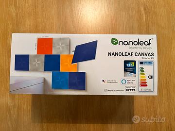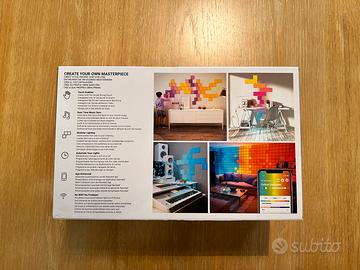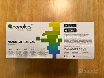 Vendo pannelli luminosi Nanoleaf Canvas smarter kit nuovo, mai usato. Kit composto da 9 pannelli quadrati, connettori per accoppiarli (composizione a piacere), alimentatore e adesivi per attaccarli a parete. Altre caratteristiche:
