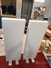 Causa cessazione di attività, si liquidano vari componenti Hi-Fi (segui il profilo per altri componenti) Pannello Fonoassorbente SMART WALL Bifacciale costruito da MasAcoustics Prezzo di vendita nuovo: 410,00 Euro per la coppia Dimensioni Solo pannello: H 149,50 x L 50 X P 12,5 Profondità conteggiando i supporti a terra: 41 I Pannelli fonoassorbenti Smart Wall Bifacciali sono realizzati con una struttura in legno, stoffa fonotrasparente ed un riempimento fonoassorbente. Sono estremamente versatili e sono progettati per migliorare l’acustica di qualsiasi tipo di sala, ufficio, hi-fi, studio di registrazione, sale prova , home theater, ristorante … I pannelli SMART Wall permettono di assorbire le riflessioni indesiderate, accorciare il tempo di riverbero ed eliminare il flutter echo. Sono efficaci su un range di frequenze molto ampio per un pannello di questo spessore. I pannelli SMART Wall Bifacciali si possono appoggiare mediante il Kit di sostegno autoportante. Sono molto pratici specie in quei luoghi dove non è possibile appendere pannelli fonoassorbenti classici.