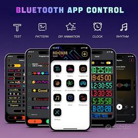 Controllo intelligente dell'app: i segnali LED sono controllati tramite un'app collegata tramite Bluetooth. Molti modelli divertenti e animazioni sono integrati nell'app. I controlli app facilitano la regolazione di testo, grafica e animazioni e la modalità musica aggiunge ulteriore tensione.