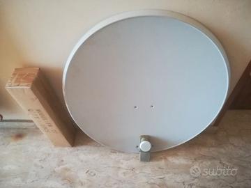 Parabola maggiorata di 90 cm più accessori. Solo la parabola pagata 80 € perché è quella grande. In aggiunta kit di montaggio, tutto nuovo. Mai installata per cambio soluzione. Poi c'è anche l'occhio e il decoder NOKIA lo regalo.
