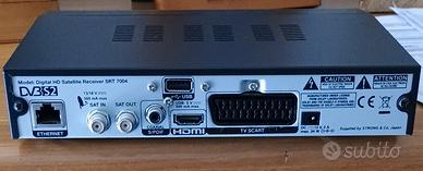 Parabola satellitare 80x70 cm completa di convertitore LnB a due vie, di staffa per il montaggio a parete e decoder satellitare Strong SRT7004, tutto in buone/ottobre condizioni.