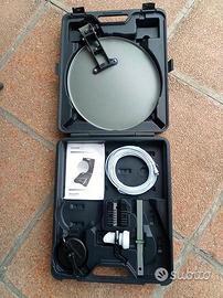 Parabola portatile in valigetta , usata solo una volta con camper a noleggio.Fissaggio a staffa e/o a ventosa, consegno a mano,completa di analizzatore ricerca segnale e una decina di metri cavo Sat.