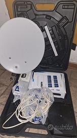 parabola portatile con ricevitore satellitare, ottima per camper roulotte, da utilizzare anche per balconi. ottime condizioni. facilissimo da utilizzare.