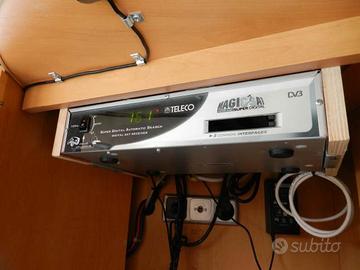 Parabola satellitare con puntamento automatico (decoder TELECO MAGIC SAT SUPER DIGITAL CI), decoder SKY HD, Decoder TV SAT, cavi e accessori vari (cavi, antenna terrestre, telecomandi, etc). Per configurazioni degli apparati rimando alla pagina 218996 di camper on line website.