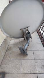 Parabola da circa 80–90 cm (con ruggine visibile sul bordo e sulla superficie) LNB singolo (immagine 1 e 3) — LNB economico Staffa/supporto da pavimento/balcone (immagine 2) con testa di orientamento