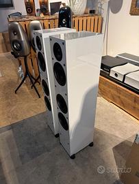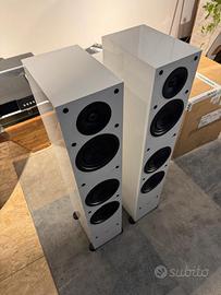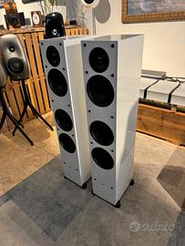 Diffusore da pavimento a 3 vie bass reflex. Tweeter da 25mm a cupola X-PAL™ da 25mm con lente acustica ad allineamento di fase PPA™ . Midrange da 140mm con cono in carbon - polipropilene e cupola parapolvere invertita. 2 Woofer da 140mm con cono in carbon - polipropilene e cupola parapolvere invertita. Sensibilità 91dB. Risposta in frequenza in asse 55Hz - 21KHz. Potenza amplificatore 15-130W. 8ohms.