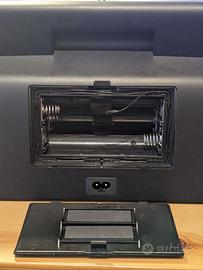 Vendo unità altoparlanti acustici stereo Bluetooth Parrot DS-3120 alimentabile sia a corrente elettrica sia a batteria (con 6 batterie LR14, "torcia" tipo C). Vano frontale con lettore SD/MMC card, porta USB (per connesione PC o flash drive) e uscita jack audio analogica da 3,5mm. Supporta i formati audio digitali MP3, WMA e SBC. Sono presenti tutti gli accessori originali di fabbrica che includono: