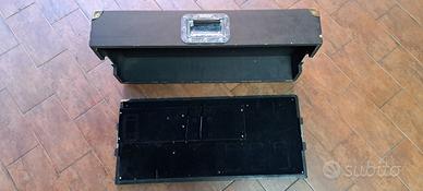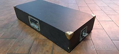 Pedaliera, pedal board artigianale in legno, misure cm 35x76x14,5h esterne cm 32x73x12h interne molto robusta usata, presenta segni di utilizzo, ma completamente integra. Arrivi togliere il coperchio attacchi corrente 2 jack e.......fuoco.