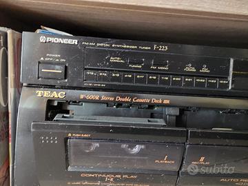Vendo in blocco pezzi di Hifi vintage, perfettamente funzionanti. Composti da Radio Pioneer F-223, doppia piastra Teac W-600R con doppio autoreverse, amplificatore Technics 50 w. con tutti i cavetti necessari. L'amplificatore ha bisogno di pulire i cursori del volume, dei bassi, del balance e degli acuti con dello spray per contatti elettrici. Vendita tra privati con formula visto e piaciuto, non accetto restituzione in nessun caso. Solo spedizione nessuno scambio a mano. Prezzo non trattabile. Spedizione solo con poste italiane.