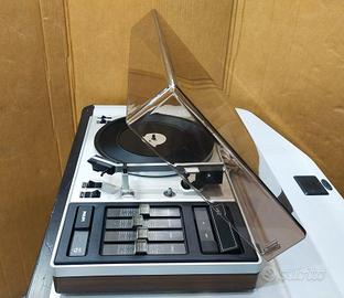 Questo è uno dei migliori marchi più conosciuti nella produzione di giradischi HI-FI a livello europeo, questa tipologia di prodotti venivano chiamati coordinati. Consisteva in un ottimo giradischi del tipo semiautomatico, con amplificatore entro-contenuto e una coppia di diffusori acustici a marchio Philips con sei metri cavo su ogni cassa che terminano con connettore del tipo punto/linea, L'amplificatore nell'interno del mobile del giradischi, dispone di uscite per le due coppie di casse, sempre del tipo punto/linea femmine. Dovete solo inserire il connettore uscente dal filo delle due casse a due di questi 4 connettori femmina posti dietro il mobile del giradischi ed il tutto e collegato correttamente