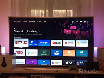 VENDO SMART TV PHILIPS 58 POLLICI - SERIE PERFORMANCE "THE ONE"Modello: 58PUS8505/12TV in OTTIME CONDIZIONI. *** DISPONIBILE IMBALLAGGIO ORIGINALE ***La TV viene fornita con la sua scatola originale, ideale per un TRASPORTO SICURO e comodo. Perfettamente funzionante, ideale per Cinema e Gaming. PUNTI DI FORZA: AMBILIGHT su 3 lati: Luci LED posteriori che seguono le immagini (effetto immersivo incredibile). QUALITÀ VIDEO: 4K Ultra HD con Dolby Vision e HDR10+.PROCESSORE P5: Immagini fluide e colori naturali. AUDIO: Supporto Dolby Atmos. SISTEMA SMART:ANDROID TV (Aggiornato): Netflix, YouTube, Disney+, Amazon Prime, Kodi e migliaia di app scaricabili. GOOGLE ASSISTANT: Comandi vocali integrati nel telecomando. DESIGN PREMIUM:Cornice elegante in metallo chiaro. BASE GIREVOLE: Permette di orientare la TV a destra o sinistra senza muovere il mobile. CONDIZIONI:Estetica: Pari al nuovo. Accessori: Telecomando originale incluso.Connessioni: 4x HDMI, 2x USB, Wi-Fi, Bluetooth. PREZZO: 350 Euro (Disponibile per qualsiasi prova prima dell'acquisto)