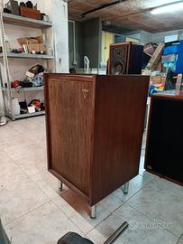 Incredibile coppia di diffusori anni 60 realizzata dalla Italvideo di Milano,monta dei bellissimi full range da 12 " che sono stati elaborati da tecnico specializzato alla "Rullit" (ovvero con sospensione in pelle naturale e vernici da liuteria sul cono,eliminato il whizzer visto che montano un tweeters University Sound in alnico V) crossover minimale a 6db per correttezza di fase assoluta,componenti di qualita' stratosferica (induttanza a nastro Janszen e condensatori Mko made in Japan) efficenza elevata(circa 94db) pilotabile con ampli di piccola potenza e grande qualita' suono di una dinamica e realismo incredibile! posso mandare video whatsapp, spedizione possibile ma molto complicata e costosa(su pallet)