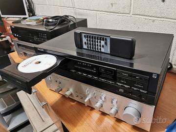 Philips CD 614 - Lettore CD Bitstream - Meccanica CDM-4 - Ottime Condizioni.. Di proprietà di un amico metto in vendita ..lettore CD Philips modello CD 614, un vero classico dell'alta fedeltà anni '90, celebre per la sua musicalità e l'estrema affidabilità. Il dispositivo è in ottime condizioni estetiche e funzionali: il case è ben conservato e il display è nitido e senza segmenti mancanti. Caratteristiche principali: Conversione Bitstream: Equipaggiato con il DAC SAA7321GP, offre un suono caldo, dettagliato e molto naturale. Meccanica CDM-4/19: Una delle migliori meccaniche mai prodotte da Philips (swing-arm), nota per leggere senza incertezze anche i CD masterizzati e per la sua longevità. Uscite: Doppia uscita analogica (RCA) e uscita digitale coassiale, ideale per chi volesse usarlo come meccanica di trasporto collegata a un DAC esterno moderno. Uscita Cuffie: Con controllo del volume dedicato. Accessori e Stato: Telecomando: Incluso telecomando sostitutivo (non originale) perfettamente compatibile, che permette di gestire tutte le funzioni principali comodamente dal divano. Manutenzione: Il lettore è stato testato, la lente è stata pulita e il carrello scorre fluido senza intoppi. Possibile spedizione dopo accordi con il proprietario Priorità consegna a mano Gli altri apparecchi se visibili in foto ( giradischi amplificatore registratore a cassette lettore cd equalizzatore bobine casse ecc) non sono in vendita a meno che non lo trovi nei miei annunci