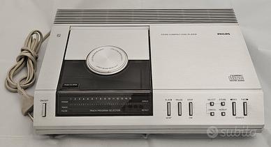 Vendo Philips CD100, storico lettore CD top-loader Philips, oggetto di grande interesse per collezionisti e appassionati di audio vintage, tra i primissimi lettori CD commercializzati al mondo. L’apparecchio si accende regolarmente, il disco gira, ma non aggancia la traccia / non legge correttamente il disco, quindi viene venduto da revisionare o riparare. Esteticamente si presenta bene per l’età, come da foto, ed è un oggetto molto affascinante anche dal punto di vista storico e collezionistico. Condizioni funzionali: si accende il disco gira non legge correttamente la TOC / non aggancia la traccia da considerare non funzionante ai fini dell’uso immediato Dati utili modello: Philips CD100 dimensioni: 320 × 73 × 267 mm peso: 5 kg Vendita tra privati, formula visto e piaciuto. Preferibile ritiro a mano, ma posso spedire con imballo accurato.