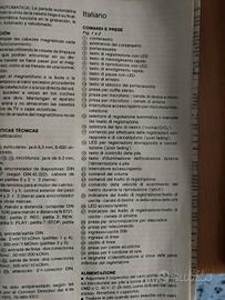 Completo di manuale in italiano, cavo di alimentazione e cavo Rca.
