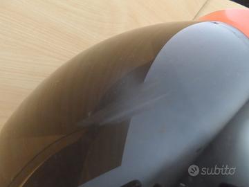 E' presente un graffio sulla parte alta della visiera, uno dei due perni laterali che fanno ruotare la visiera è stato sostituito e vi sono un paio di piccole crepe nella parte superiore della visiera.....tutti difetti documentati nelle fotografie