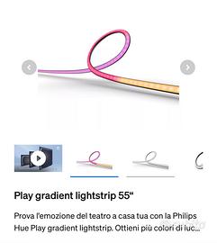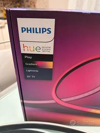 Completo come da confezione nuova. Gli agganci per la tv basta aggiungere del nastro biadesivo anche non troppo potente per non lasciare residui sul tv. Si puo abbianre a Philips Hue Sync Box oppure direttamente ad un Tv Samsung o Lg con relativa app Hue (tv compatibili dal 2024 come da sito philips).
