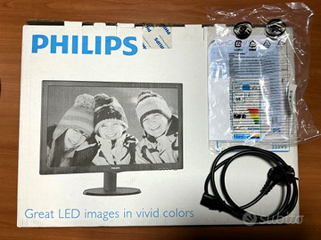 Philips 223V5LHSB2/00 21.5" Widescreen LCD Monitor. Monitor Philips 223V5L LED 21,5” Full HD 1920x1080. HDMI + VGA Base e scatola originali Testato, nessun pixel difettoso Perfetto per lavoro e uso domestico. MAI USATO, ACCESO una volta per verifica schermo
