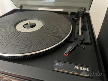 Impianto Hi-Fi Philips con giradischi, radio, mangiacassette doppio e casse. Tutto funzionante.
