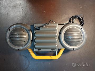Funzionalità:Dispone di un lettore di audiocassette integrato ( la plastica della ribalta è danneggiata per cui lo sportellino da aperto viene via, e il mangiacassette non gira), controllo del volume, tono e funzione stereo/spaziale tutto perfetto.