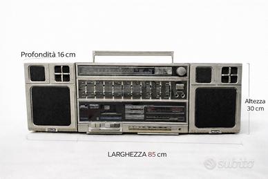 Stereo portatile PHILIPS originale anni 80, un vero pezzo da collezione per amanti hi-fi, design industriale e arredamento vintage. Modello imponente da ben 85 cm di larghezza, presenza scenica assurda, perfetto anche come oggetto d’arredo oltre che come sistema audio. Design iconico con doppie casse, equalizzatore grafico e radio analogica old school: il classico suono caldo che oggi non trovi più. Funzionante e completo nella maggior parte delle sue parti, con normali segni del tempo coerenti con l’età. 🔧 Segnalo in totale trasparenza: il tasto WIND è bloccato, la sezione TAPE è da revisionare, e mancano due slider dell’equalizzatore (visibili in foto). Non compromettono l’estetica generale né il fascino del pezzo, ma lo rendono perfetto anche come base per restauro o progetto. Radio funzionante. Ideale per collezionisti, appassionati di elettronica vintage, oppure per chi cerca un pezzo forte stile anni 80 per casa, studio o negozio.