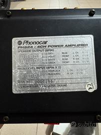 Amplificatore car audio Phonocar modello ph524 40 watt x 4 ch mai usato