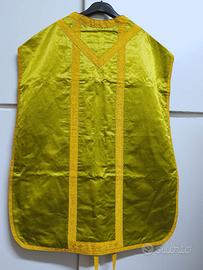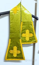 Paramenti sacri. Pianeta in raso di seta verde, con stola, manipolo, velo da calice e borsa. In perfette condizioni.