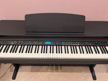 Pianoforte digitale in ottime condizioni, utilizzato rarissime volte. Perfettamente funzionante e senza alcun segno di usura o graffi. Pedali come nuovi in quanto sempre protetti dal copri-pedale. Accesso USB funzionante. Il leggio può essere alzato ed abbassato a piacimento. Tasti pesati perfettamente funzionanti. Possibilità di regolare in volume tramite apposito tasto. Attacco jack per suonare con cuffie. Tutto funzionante.