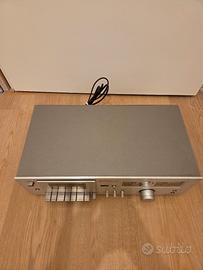 In vendita un pezzo di storia dell'Hi-Fi giapponese: il Technics M10 (RS-M10) Stereo Cassette Deck. Prodotto alla fine degli anni '70, questo modello è celebre per la sua affidabilità e per i suoi splendidi VU meter analogici retroilluminati, che conferiscono un calore visivo unico a qualsiasi setup audio vintage. Il design frontale in alluminio spazzolato (Silver) è un classico intramontabile, perfetto da abbinare ad amplificatori della serie Technics SU o simili dell'epoca. Caratteristiche Principali: VU Meter Analogici: Indicatori di livello ad ago grandi e precisi per i canali Left e Right. Testina MX: Testina ad alta durata per una riproduzione fedele. Compatibilità Nastri: Selettore per nastri Normal, CrO2 e FeCr. Riduzione Rumore: Sistema Dolby NR integrato per minimizzare il fruscio di fondo. Contatore Meccanico: Tape counter a 3 cifre con tasto di reset. Ingressi: Doppia entrata Microfono frontale e uscita Cuffie dedicata. Specifiche Tecniche: Tipo: 2 testine, deck compatto a cassette singolo. Motore: DC elettronico a controllo di velocità. Dimensioni: 430 x 142 x 251 mm circa. Peso: 5 kg circa.