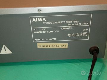 Piastra di registrazione a cassette Aiwa 30 € Model: AD-F 250 Stereo Deck Vintage Indicatori led del livello d'uscita. dbx rapporto S / N maggiore di 100 dB . Type: Cassette Tape Deck Years of manufacture: 1984 - 1986 Made in: Japan Color: Silver Power consumption: 15 W Dimensions: 420 x 110 x 280mm Weight: 4 kg Enrico telefono e whatsapp: T. 370 123.97.31 Napoli