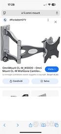 Vendo braccio estensibile per TV a schermo piatto marca OMNI MOUT modello CL-M W 3000 con attacco VESA 20 × 20 con eventuale possibilità di modifica attacco VESA 30 × 30 con viti e piastre comprese nella vendita. La piastra supporta TV fino ad un peso di 40 kg. All’interno dei bracci si possono far passare eventuali cavi alimentazione, TV, Internet, HDMI, ed altro. La piastra ha un peso totale di 8 kg. Eventuale spedizione consigliato lo scambio a mano.