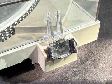 Giradischi con regolazione velocità e controllo stroboscopico, ritorno automatico, trazione a cinghia. Funzionamento perfetto. Testina completa nuova AT85EP Audio-Technica, cinghia nuova. Un supporto coperchi rotto e copertura molto graffiata, il resto in ottime condizioni. Prezzo basso per il coperchio e il supporto dello stesso rotti non trattabile.