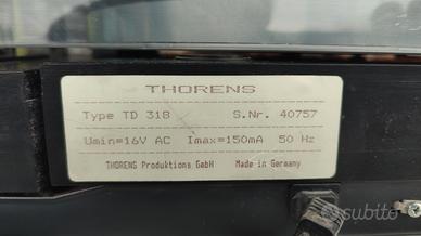Piatto Thorens TD318 con testina Shure e puntina di ricambio VN45HE, tutto in ottime condizioni, come da foto (solo qualche graffio sul coperchio) vendo E. 450