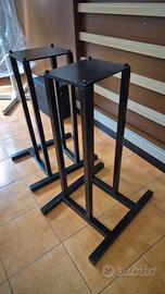 Coppia Stand Diffusori Hi-Fi – Modello Heavy Duty a 4 colonne con Punte Descrizione: Vendesi coppia di supporti (stand) professionali per diffusori acustici, ideali per casse bookshelf o monitor da studio. Struttura estremamente robusta e stabile, pensata per migliorare drasticamente la resa sonora. Caratteristiche principali: Design a 4 colonne: Garantisce massima stabilità e riduzione delle risonanze rispetto ai modelli economici a colonna singola. Isolamento Acustico: Ogni stand è dotato di 4 punte (spikes) superiori integrate per disaccoppiare la cassa dalla struttura, rendendo i bassi più precisi e puliti. Materiale: Acciaio verniciato a polvere nera, finitura opaca. Base Rinforzata: Design della base a "H" per un appoggio sicuro su ogni superficie. Condizioni: Usati, in buone condizioni strutturali (presentano normali segni di usura che non ne pregiudicano l'estetica generale né la funzionalità). Prezzo con margini di trattabilità