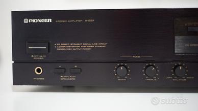 Vendo amplificatore vintage Pioneer A-221 (anno circa 1990) in ottime condizioni. Completamente funzionante e originale in tutti i componenti. Nessun graffio evidente e nessun fruscio. Suono pulito, caldo e potente tipico Pioneer. Dati tecnici principali: Potenza: circa 2 x 35 W su 8Ω Ingresso phono (MM) per giradischi Collegamento fino a 2 coppie di diffusori (A/B) Risposta in frequenza ampia e bilanciata Costruzione solida, tipica qualità Pioneer anni ‘90. Ideale per impianti Hi-Fi vintage. Contattami per ulteriori info (possibile invio video sul funzionamento) Posso spedire con super imballo.