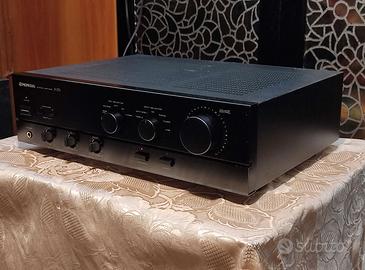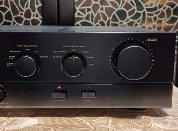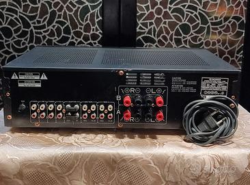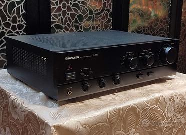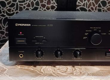Vendo amplificatore stereo integrato Pioneer A-335 possibilità di pilotare 4 diffusori (2+2),ottime condizioni e perfettamente funzionante, comprensivo di manuali in pdf, Hi-Fi vintage anni '80 In caso di spedizione non utilizzo il servizio di tuttosubito. Accetto altro pagamento con video dimostrativo del funzionamento Caratteristiche: -Anno di produzione: 1989 -Frontale: Nero con scritte color oro -Potenza nominale: 180W -Potenza canale: 40W min.in RMS su 8 Ohm -Distorsione Armonica Totale: 0.02% -Risposta In Frequenza: 20Hz - 20kHz -Ingressi RCA: Phono, Tuner, Cd, Tape 1/Dat Play, Tape 2 Play, Line, Adaptor In -Uscite RCA: Tape 1/Dat Rec, Tape 2 Rec/Adaptor Out -Jack per cuffie da 3,5mm placcato oro -Impedenza speaker da 4 ohm a 32 Ohm -Tasti selezione "Speakers" A - B (On/Off) -Tasti selezione "Loudness" (+5db 100 kHz) -Tasto selezione "Direct" (ascolto diretto della sorgente audio senza toni) -Selettore sorgente audio: Phono, Tuner, Cd, Tape 1/Dat, Tape 2, Line -Selettore Rec Out Control: Tape 2>1, Tape 1>2, Source, Off, Cd, Tuner -Controlli per bassi (+-8db 100Hz), alti (+-8db 10KHz), balance -Alimentazione a corrente alternata (CA) 220 Volt 50Hz, -Dimensioni: L-42cm x H-12.6cm x P-34.8cm -Peso: 7Kg Per informazioni non esitate a contattare Eventuale spedizione in TUTTA ITALIA A335 A 335 str