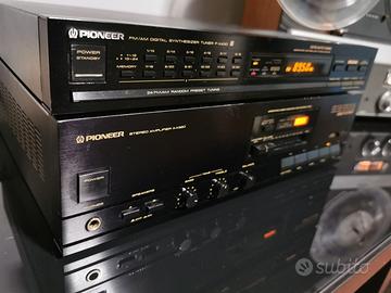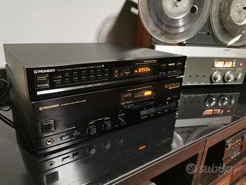 Pioneer a-x320 più f-x430 Amplificatore e radio pioneer Causa esubero vendo parte della mia collezione di elettroniche... Amplificatore integrato pioneer ax 320 più più radio F x430... Cominciamo col dire che sono 2 pezzi separati della serie midi ( 36 cm di larghezza) . Non è un giocattolo.. Metallo e alluminio spazzolato - Amplificatore ax320..... Metà anni 80... Giapponese..... Ottimo integrato da 40 watt per canale su 4 diffusori... 6 chili di peso....... Cd direct per un suono ancora più diretto e più pulito... Ingresso per giradischi per Dat cd radio tape e aux per connettere un modulo Bluetooth tramite rca Radio tuner F X430.. Radio di ottima qualità ben costruita e ottima ricezione con stazioni memorizzabili e tante altre funzioni Lo stereo non è comprensivo di casse ma se vuoi le ho in vendita separata Posso spedire dopo video dimostrativo oppure vieni ad ascoltarli a casa mia Priorità consegna a mano Gli altri apparecchi visibili in foto ( giradischi amplificatore registratore a cassette equalizzatore bobine revox casse ecc) non sono in vendita a meno che non lo trovi nei miei annunci